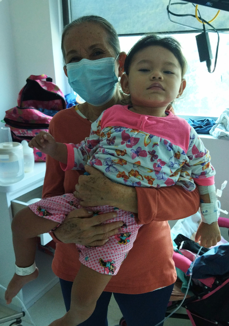 Young child Lia sitting on hospital bed during epilepsy treatment journey