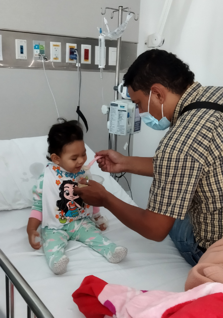 After the postoperative period, we realized that the seizures returned with more intensity. Isabella sat up at eleven months and crawled at two years old and has been making progress due to the therapies she has had since she was fifteen days old. My daughter has clung to life and every day we try harder to give her better quality of life and to be as independent as possible.